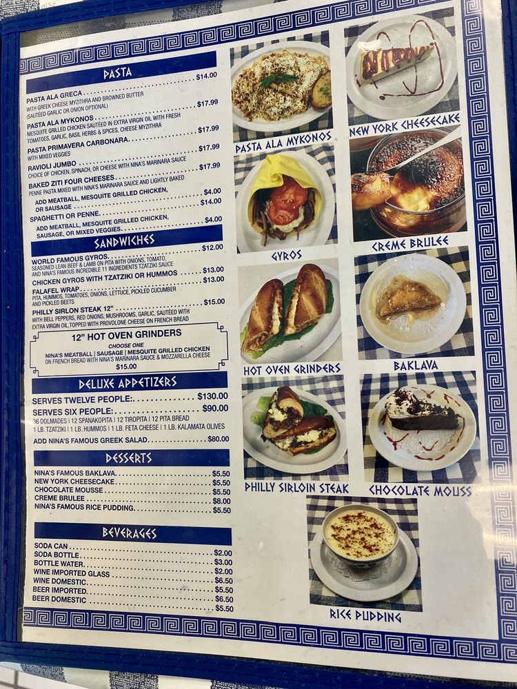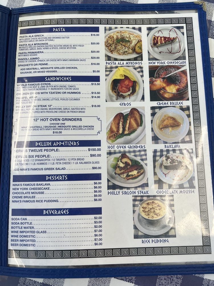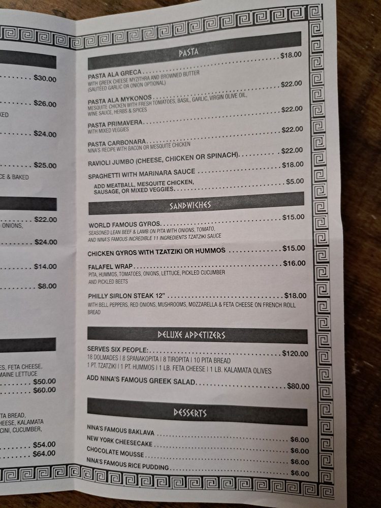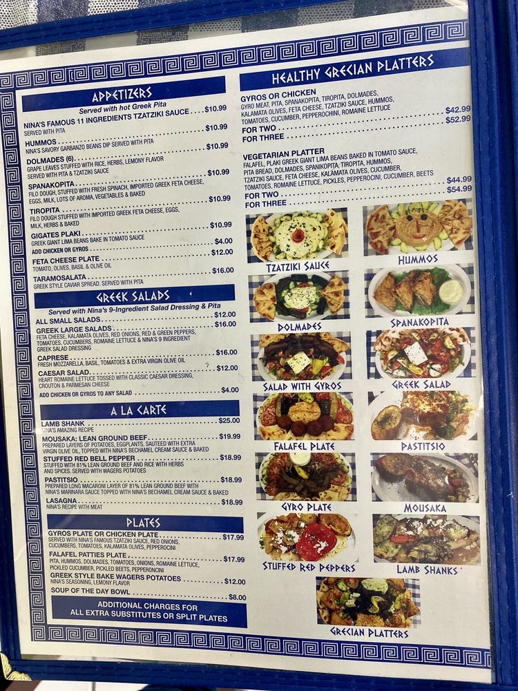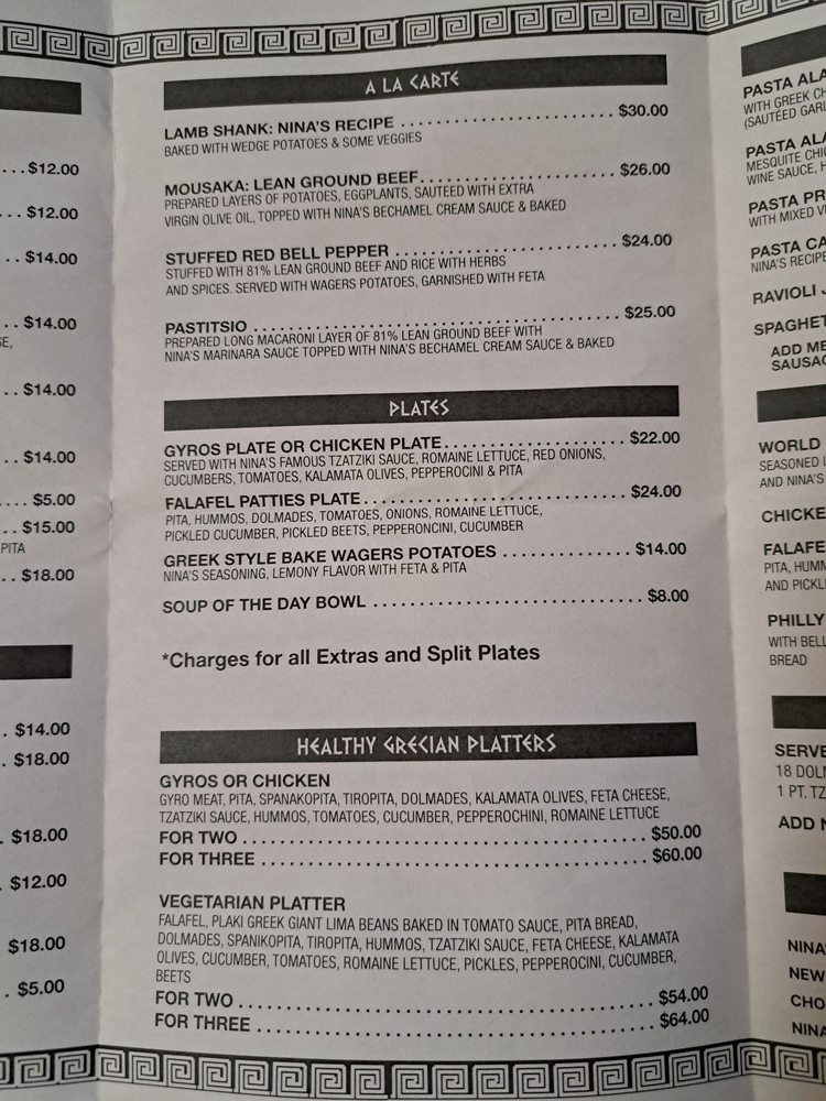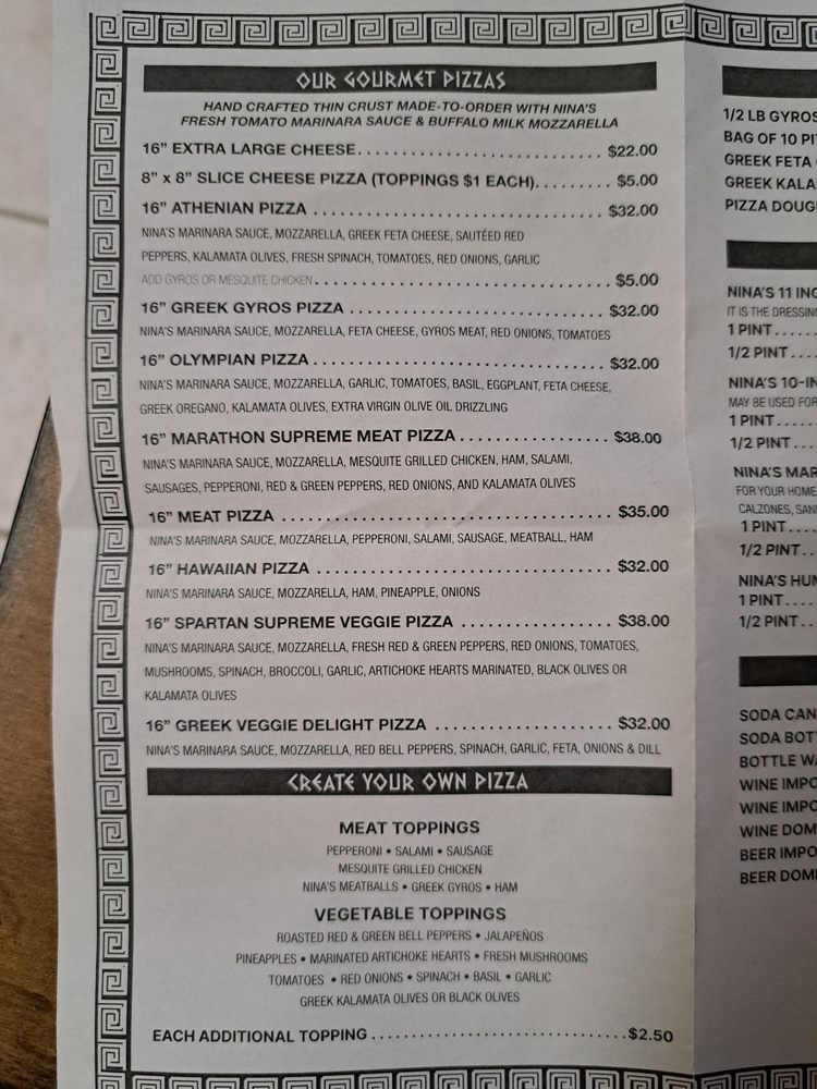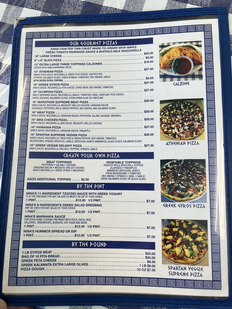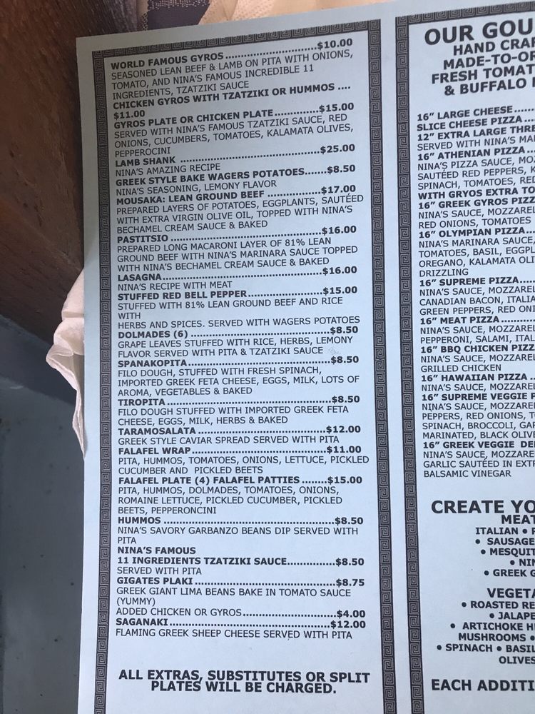 Nina’s Traditional Greek Cuisine & Pizzeria Menu (Update 2025)